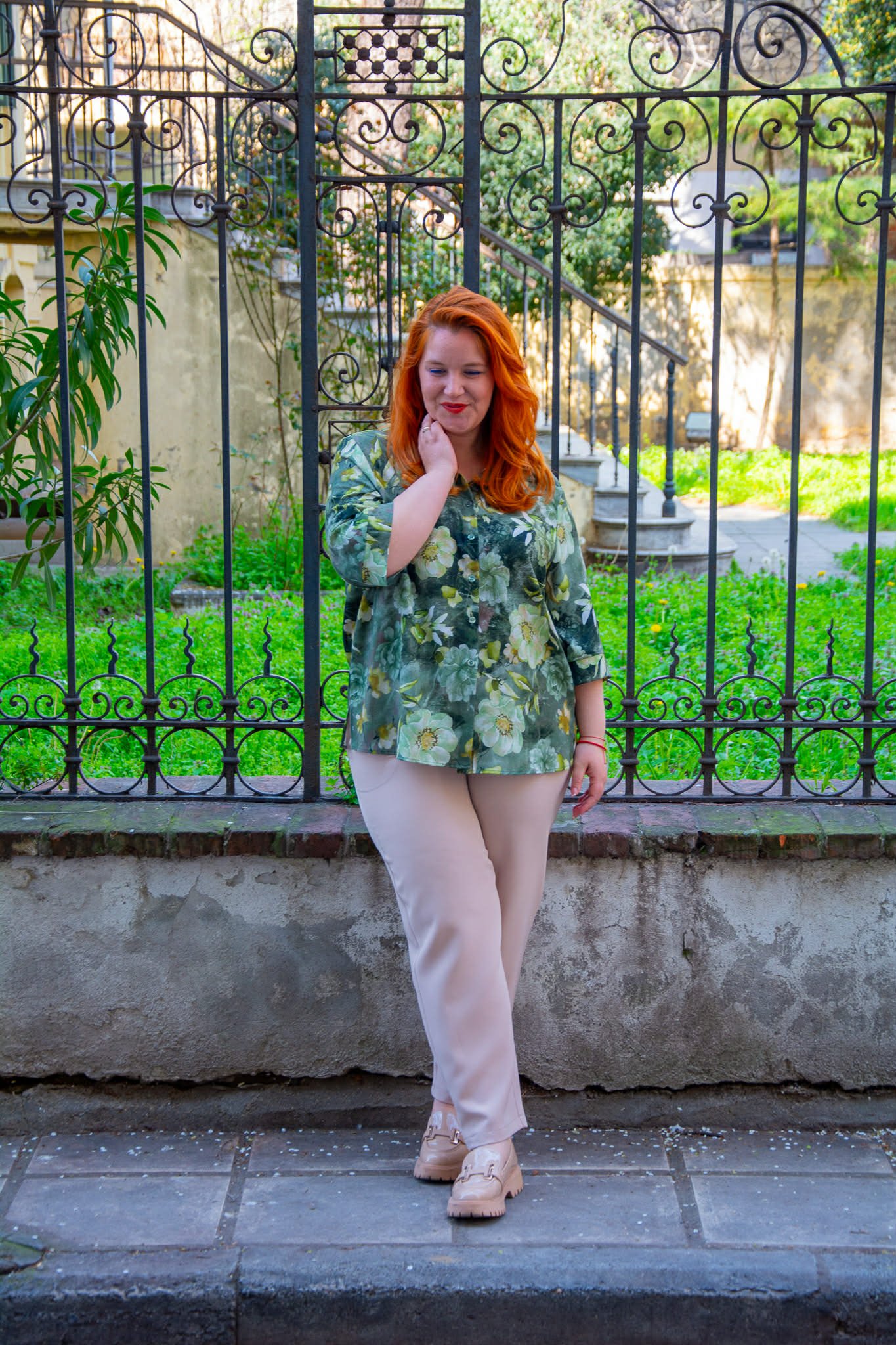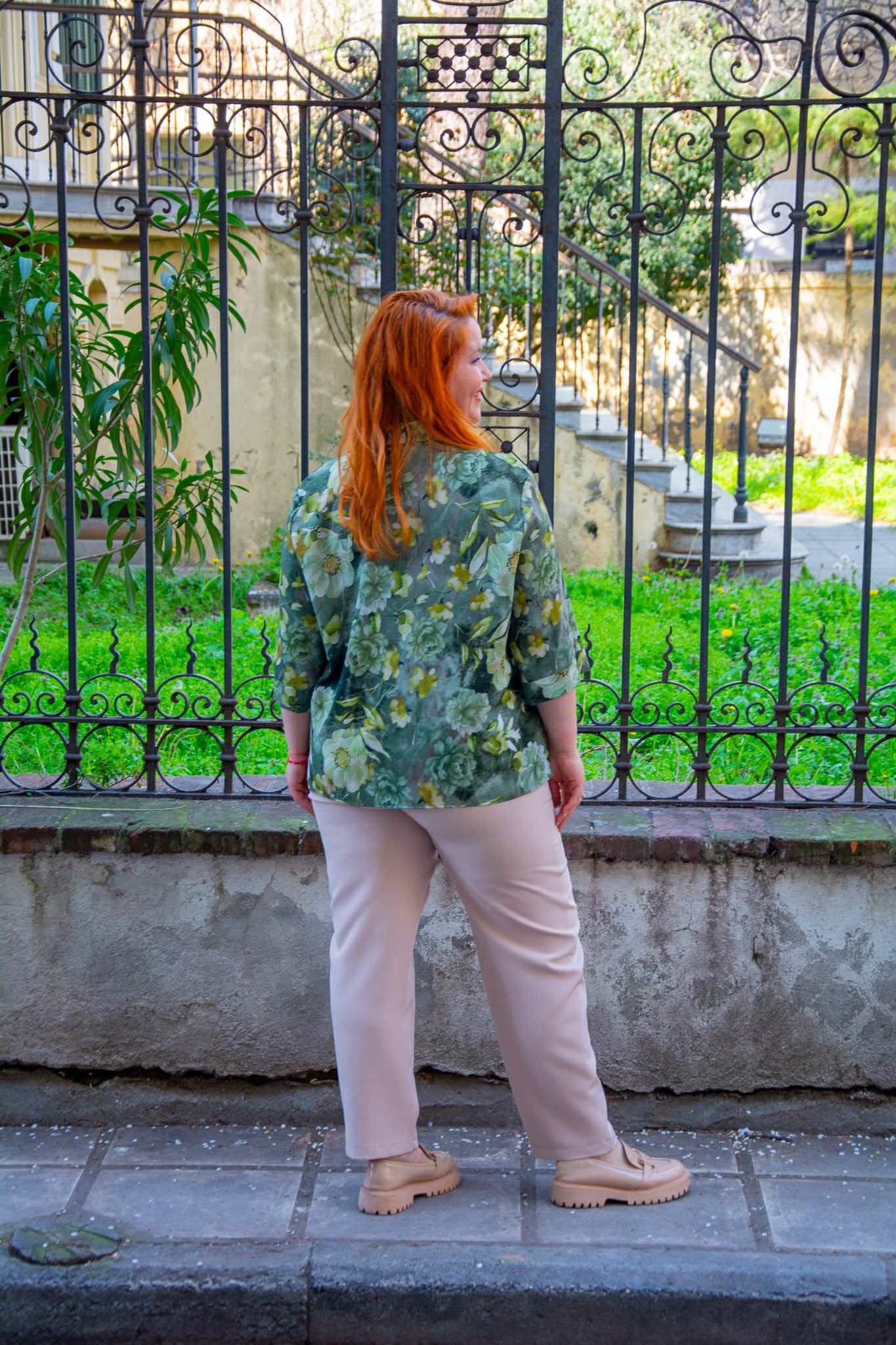 Παντελόνι γραφείου, σε μεγάλα μεγέθη. Έχει πλαϊνές τσέπες και λάστιχο στην μέση στο πίσω μέρος.